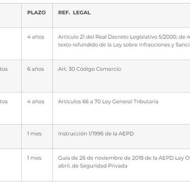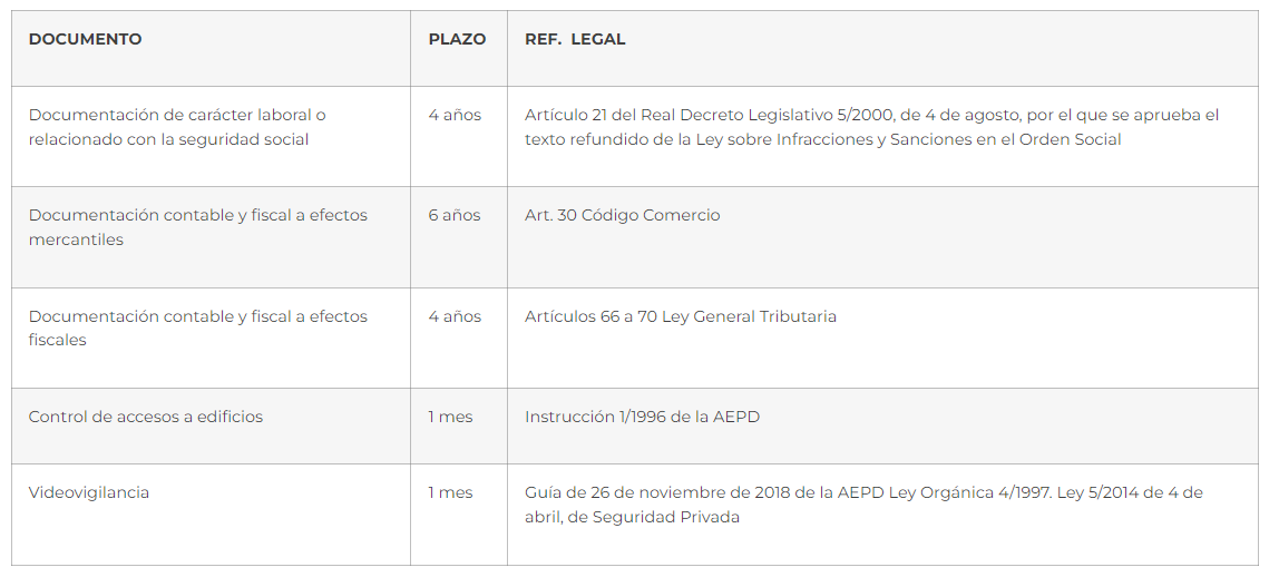 A título informativo, a continuación, se recogen los plazos legales de conservación de la información en relación con diferentes materias: